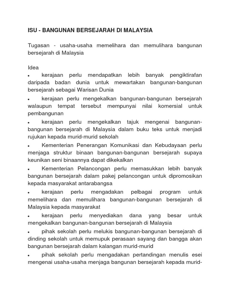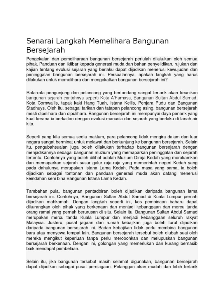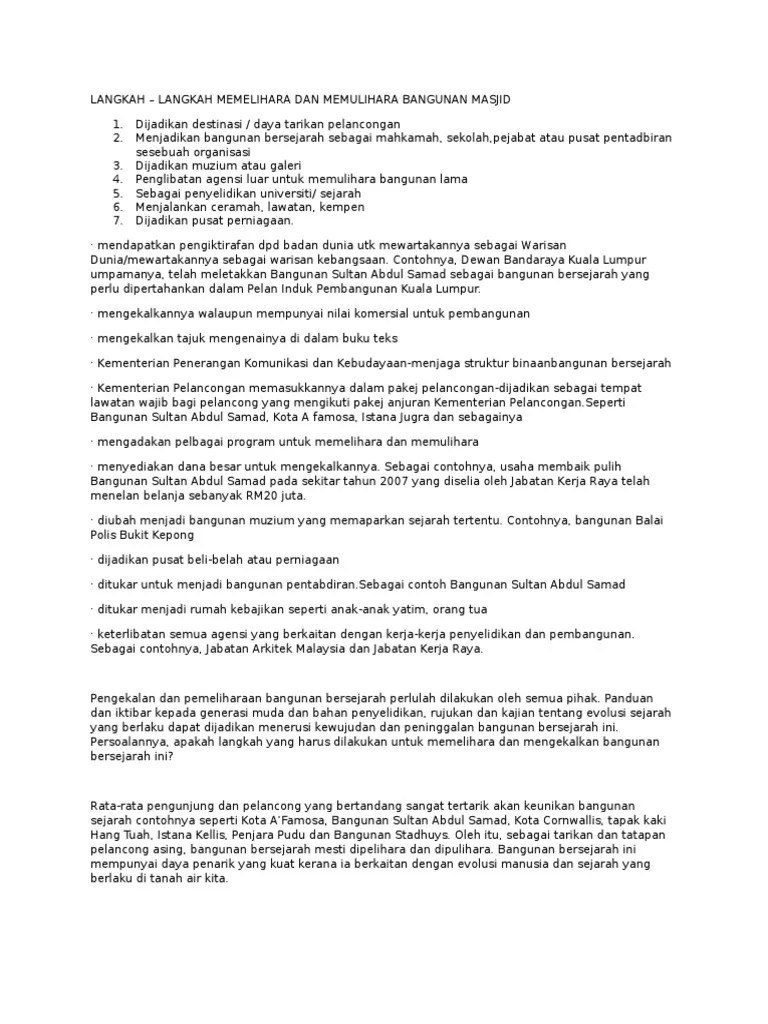 Contoh Karangan Usaha Usaha Memelihara Dan Memullihara Bangunan Bersejarah Pdf
