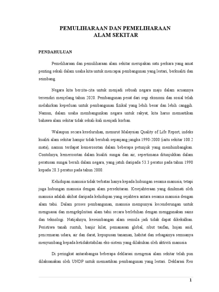Langkah Memelihara Alam Sekitar Tanggungjawab Bersama Pdf